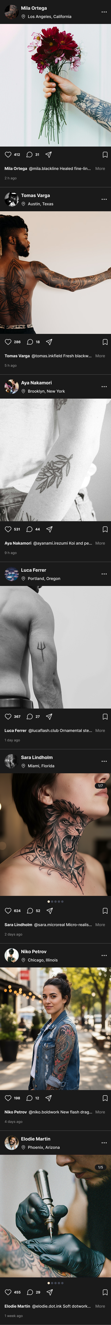 Find tattoo artists by style, location, and availability. No algorithm — just the work.